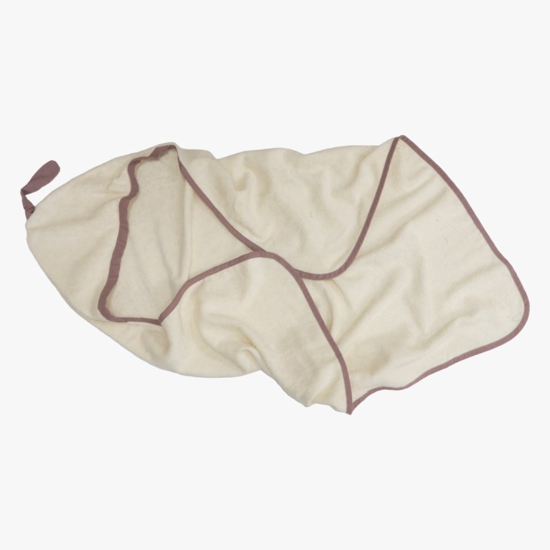 Eline hettehåndkle er laget av 100 % myk bomull, perfekt for å tørke og holde barnet varmt etter badet. Håndkleet har en praktisk hette i ett hjørne, som beskytter hodet og gjør det enkelt å henge opp etter bruk. Den søte knuten på toppen gir det et sjarmerende preg.