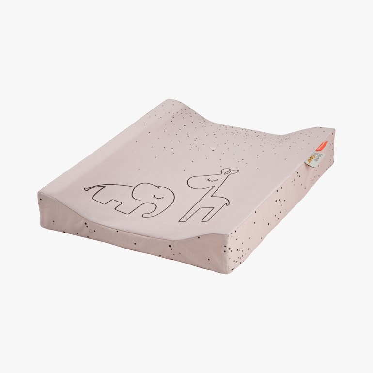 Dette stelleunderlaget er det perfekte stedet for bleieskift, med sine myke, hevede kanter og polstrede design som gir babyen en trygg og behagelig plass. Underlaget har en myk Oeko-tex-belegg som gjør det vannavvisende og enkelt å tørke av etter bruk. Mønstret med søte Dreamy dots og vennene Elphee og Raffi, gjør det bleieskiftet til en koselig opplevelse.