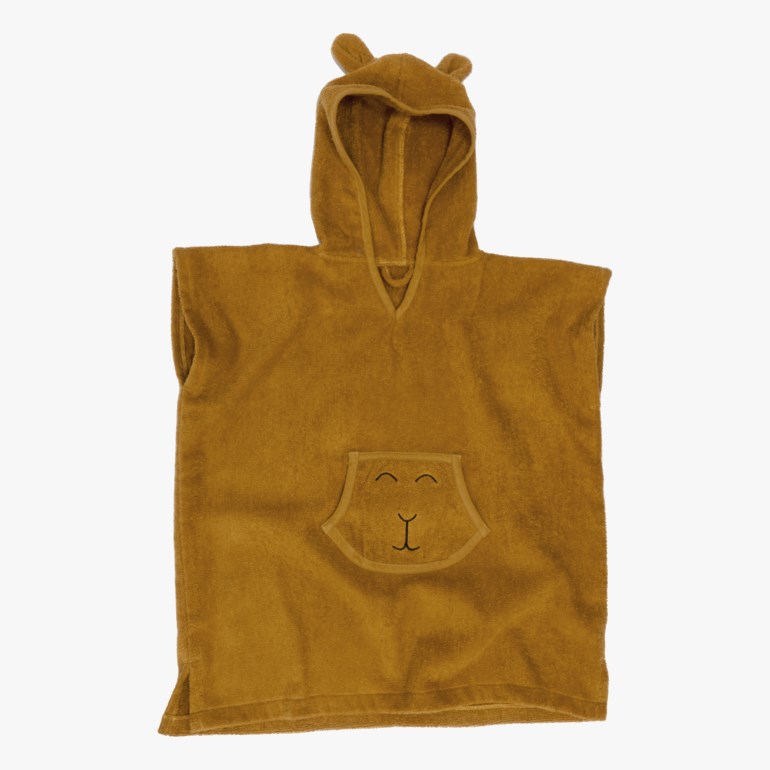 Denne badeponchoen er laget av 100 % myk bomullsfrotté og har en søt hette med ører samt en frontlomme med brodert dyreansikt. Perfekt for å gjøre overgangen fra bad til håndkle litt morsommere for barnet.